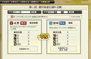 合戦が始まったら、部隊に移動や攻撃などの指示を出して、合戦を進めてください。多数のプレイヤーが参加する合戦では個人の力は小さいため、味方プレイヤーとの連携が勝利への第一歩です。合戦に勝利すると、さまざまな恩恵を得ることができます。
